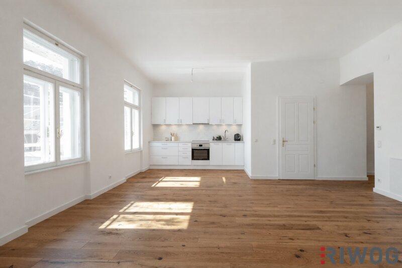 Das imposante Eckhaus mit wird komplett modernisiert, die Fassade aufwendig restauriert, die Fenster originalgetreu nachgebaut und zusätzlich werden alle Wohnungen mit zeitgemäßen, qualitativ selektierten und hochwertigen Materialen sowie neuester Technik ausgestattet. In den Rohdachboden werden 2-3 moderne Dachgeschosswohnungen mit Terrassen eingebaut. Im Altbau erhalten ausgewählte Wohnungen Terrassen, Balkone oder Gärten. Der Innenhof wird teilweise begrünt und mit 3 KFZ Stellplätzen, welche zum Kauf erhältlich sind, ausgestattet und ein Lift wird vom Keller bis zum Dachgeschoß eingebaut. Das Hofhaus wird ebenfalls wieder zum Leben erweckt und bietet einen unglaublich imposanten Blick über die Gärten direkt auf die St. Othmar Kirche.