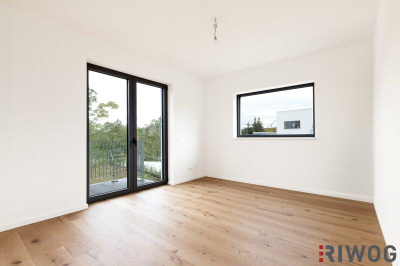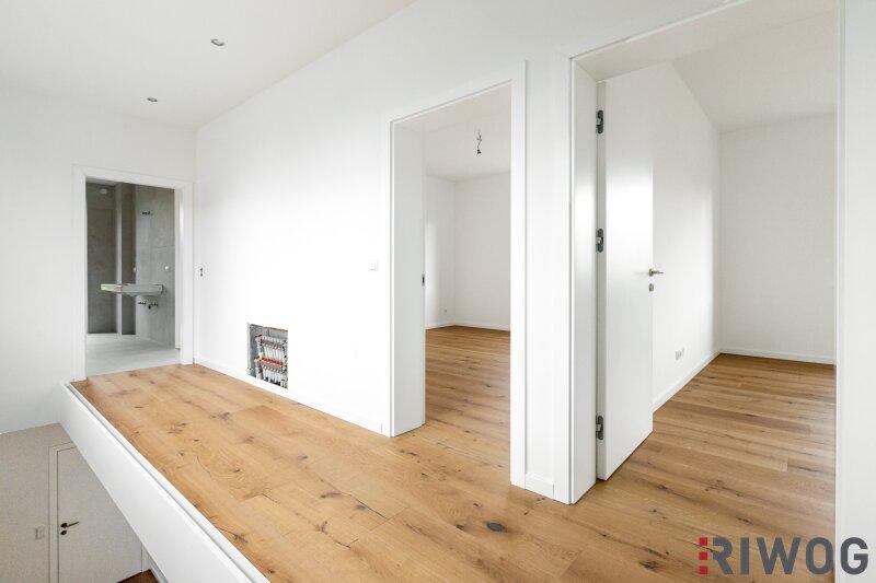 Die hochwertige Ausstattung überzeugt u.a. mit edlem Dielen-Eichenparkett, geschmackvollen Feinsteinzeugfliesen, Markenkeramiken- und Armaturen u.a. von LAUFEN und HANSGROHE und Alu-Fenster- und Fenstertüren (3-Scheiben Isolierverglasung) mit außenliegenden Raffstores. Eine Luftwärmepumpe sorgt für eine nachhaltige Wärme- und Warmwasserversorgung. Vorbereitungen für eine Photovoltaikanlage am Dach, eine Klimaanlage und eine E-Ladestation (KFZ-Stellplatz) werden ebenfalls getroffen.
