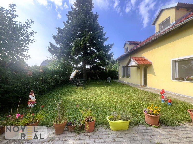 Das Grundstück bietet ausreichend Platz für Garten, Spielbereiche oder sogar eine kleine Terrasse. Die Bäume und Sträucher sorgen für eine angenehme natürliche Atmosphäre und Privatsphäre.