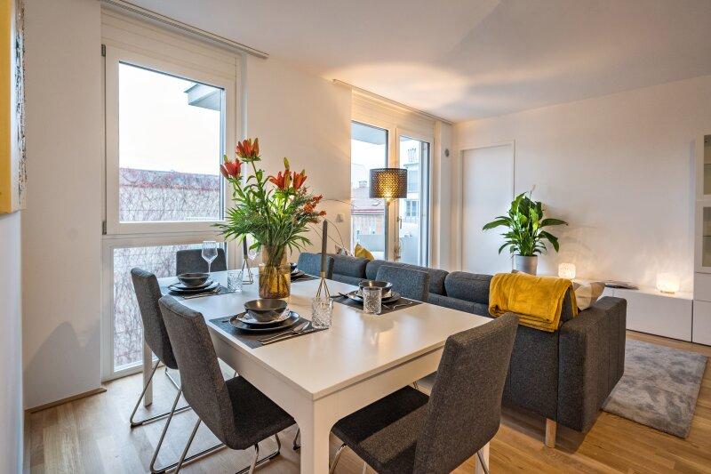 Fast alle Eigentumswohnungen verfügen über attraktive Freiflächen wie Balkone, Loggia, Terrassen oder Eigengärten. Über den Wohnungen im Erdgeschoss mit schönen Eigengärten entstehen auf 4 Obergeschoßen klug angelegte Wohneinheiten mit je 1 bis 4 Zimmern und Größen von ca. 35 bis 135 m². Die Wohnungen bieten entweder einen straßenseitigen- oder hofseitigen Blick und einen Freibereich in Form von Balkon, Loggia oder Terrasse. Den krönenden Abschluss bilden 2 attraktive Dachgeschossebenen, diese Wohnungen bieten Terrassen bzw. auch privaten Dachterrassen und einen schönen Ausblick.