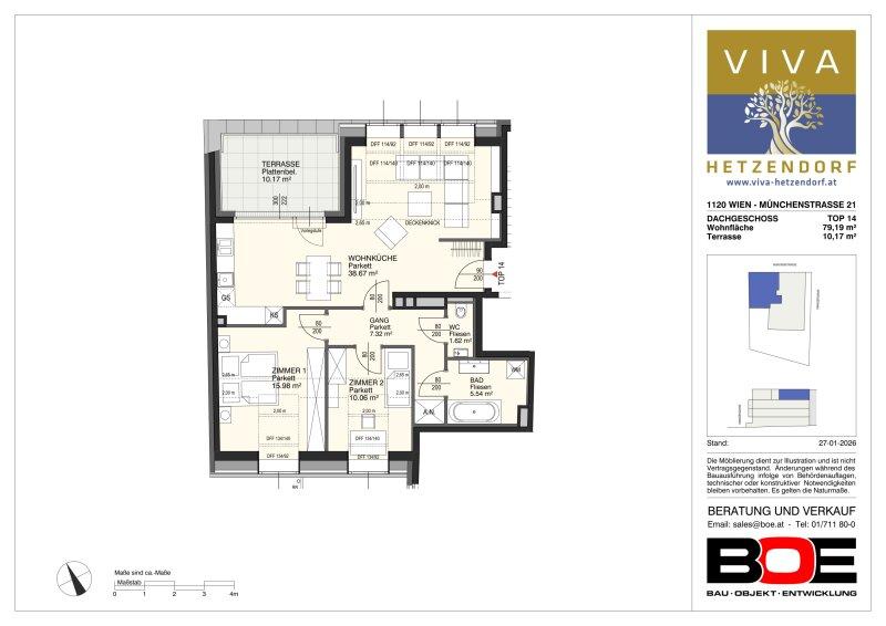 Die Top 14 ist eine wunderschöne Dachgeschoßwohnung bestehend aus 3 Zimmern und einer großen Terrasse.