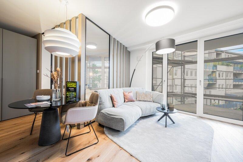Die Wohnungsgrundrisse im Dachgeschoss eigenen sich für Singles ebenso wie für Familien. Nebst der hochwertigen Ausstattung genießen die zukünftigen Bewohner:innen in den meisten Fällen wunderbare Terrassen mit einem traumhaften Blick Richtung Donaukanal und Innenstadt.
