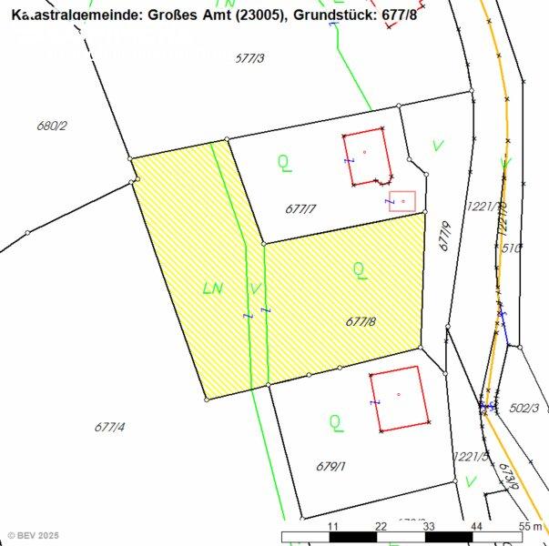Das Grundstück Nr. 677/8 hat einen Baulandanteil von 977 m², hierfür wären nach heutigem Stand € 25.396,31 an Aufschließungskosten bei einer Bebauung mit der Bauklasse II zu entrichten.