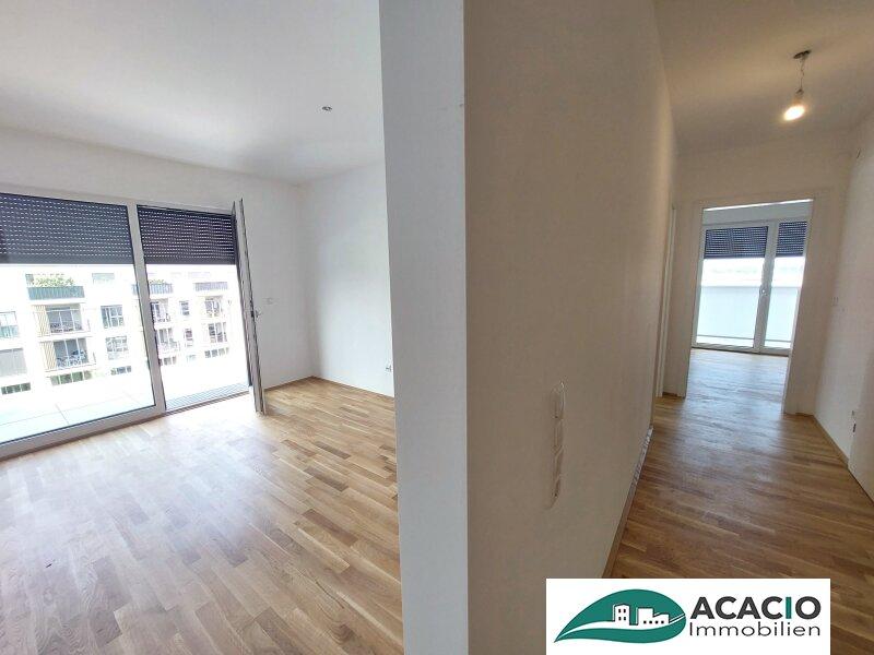 Vorraum, separates WC und Schrankraum geben zusätzlich Platz, um die wesentlichen Bereiche des Lebens strukturiert zu halten. In allen Räumen wird hochwertiger Parkettboden oder moderne Bodenfließen verlegt.