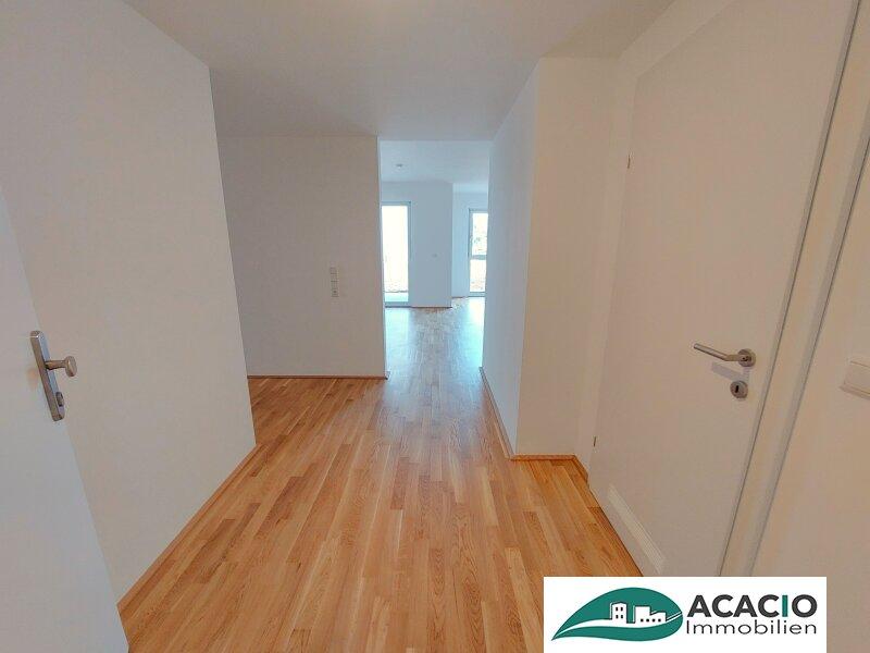 Vorraum, separates WC und Schrankraum geben zusätzlich Platz, um die wesentlichen Bereiche des Lebens strukturiert zu halten. In allen Räumen wird hochwertiger Parkettboden oder moderne Bodenfließen verlegt.
