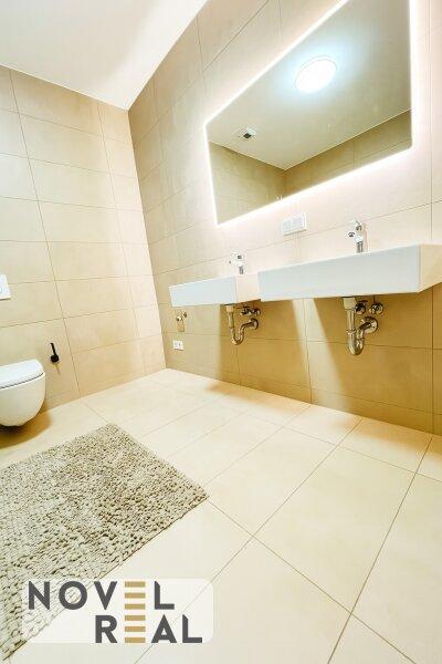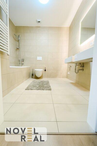 Das Badezimmer ist eine wahre Wellness-Oase: edle Armaturen, feinste Materialien und viel Platz für luxuriöse Pflege. Ergänzt wird das Raumangebot durch ein separates WC, einen praktischen Abstellraum sowie einen repräsentativen Vorraum mit ausreichend Stauraum und Garderobenfläche.