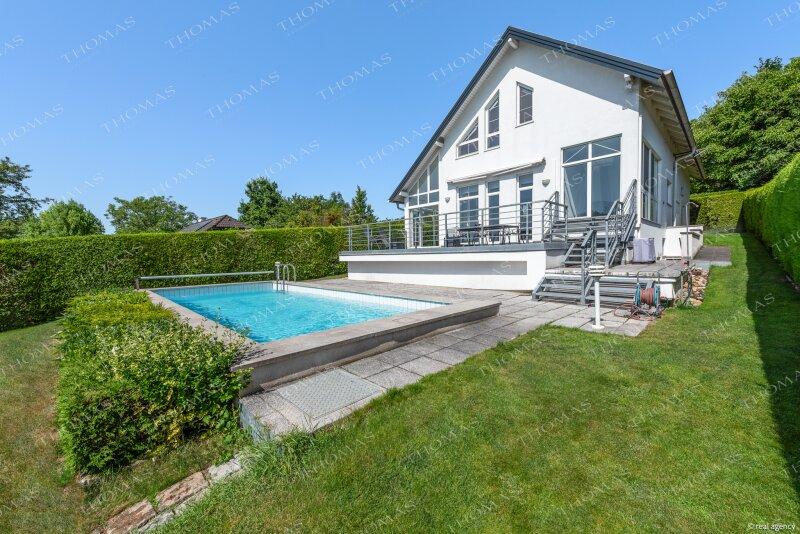 The well-maintained single-family home was built 1991 with solid construction and offers a generous plot of approximately 850m², with a total usable area of around 408m², including approximately 323m² of living space. The thoughtful architecture and high-quality fittings create a living atmosphere of the highest class.