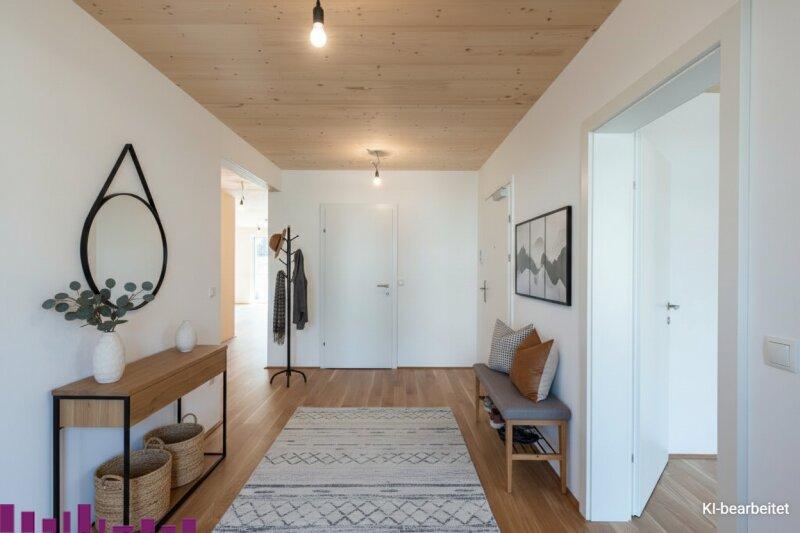 Das modern geflieste Badezimmer (4,89 m²) mit Badewanne bietet Komfort, während der Abstellraum (2,49 m²) zusätzlichen Stauraum schafft. Der weitläufige Vorraum ist ebenso wie die Wohnräume mit hochwertigem Parkett ausgestattet.