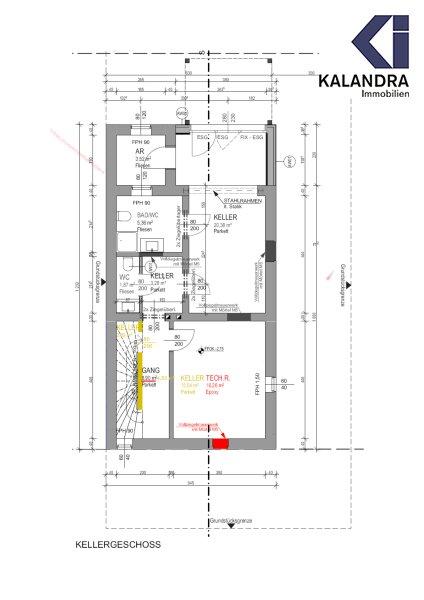 Wohn/Schlafzimmer (20m²) mit anschließendem Duschbad mit WC (5m²), separates Gäste WC, Weinkeller/Speis, sowie großer Wirtschafts-und Technikraum (15m²)