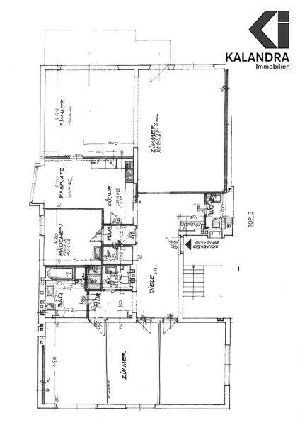 central anteroom, large living/ dining room (approx. 61m²) with exit to a 12m² south-facing, garden-side terrace, kitchen with dining place (approx. 15m²), 3 bedrooms (2 x approx. 13m², 1x approx. 18m²), one smaller kabinett (approx. 9m²) with shower, a bathroom with bathtub and bidet, 2 separate toilets, walk-in cloak-/ storage room.
