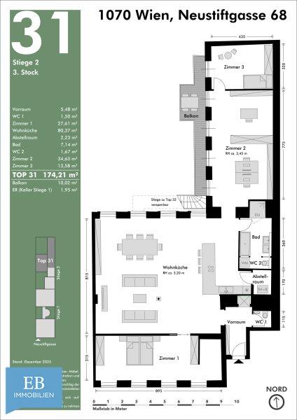 Diese außergewöhnliche Loftwohnung vereint die Großzügigkeit eines New-York-Apartments mit der warmen Atmosphäre eines Wiener Altbaus. Auf rund 174 m2 Wohnfläche präsentiert sich ein Wohnkonzept, das urbane Weite, architektonische Klarheit und anspruchsvolles Wohnen auf einer Ebene verbindet. Der fast 100 m2 große Hauptbereich bildet das Herzstück - ein Raum, der Wohnen und Arbeiten auf hohem Niveau verbindet und unterschiedlichste Inszenierungen zulässt. Die hohen Decken, der durchgehende Holzboden und die ruhige Innenhoflage schaffen eine Atmosphäre die sofort ankommt - elegant, großzügig und einladend. Im 3. Liftstock gelegen, bietet das Loft zusätzlich ein besonders angenehmes, lichtdurchflutetes Wohngefühl und maximale Privatsphäre.