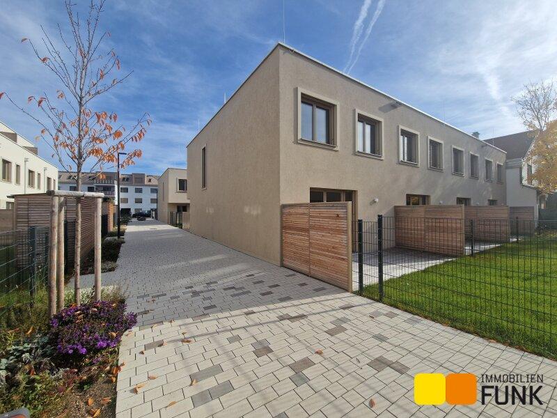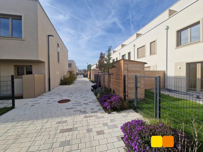 Das soeben fertiggestellte Neubauprojekt STADT küsst LAND ist ein Bauvorhaben von VI-Engineers Bauträger GmbH & Co KG und entsteht zentrumsnah in Stammersdorf auf einem ca. 10.000 m² großen Areal, eingebettet zwischen Brünner Straße und Jedlersdorfer Straße in 1210 Wien. Es umfasst insgesamt 46 freifinanzierte Reihenhäuser mit Eigengärten und Terrassen sowie 53 zugewiesene PKW-Stellplätze mit nachrüstbarer E-Lademöglichkeit. Ansprechende Grundrisse, eine werthaltige Qualität dank Ziegelmassivbauweise, ein nachhaltiges Energiekonzept mit hauseigener Luftwärmepumpe und Photovoltaik-Anlage am Dach, eine hochwertige Ausstattung wie Fußbodenheizung, außenliegender Sonnenschutz mit Elektroantrieb, Eichenparkettböden und Feinsteinzeug zeichnen zudem das moderne Projekt aus. Alle Bilder: © VI-Engineers/ Toni Rappersberger. Fotos Innenräume: Musterhaus. Machen Sie sich selbst ein Bild- wir führen Sie gerne durch die Häuser.