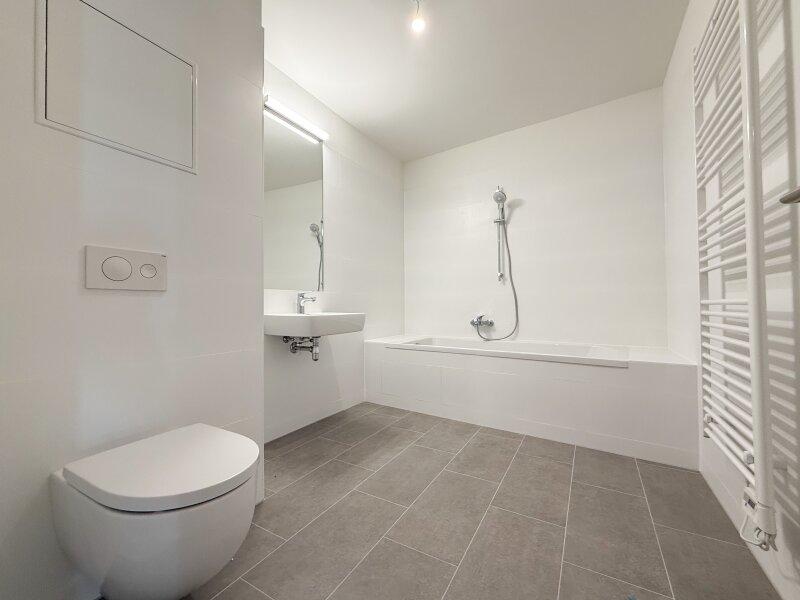 Die Wohnung ist mit hochwertigen Parkettböden in den Wohnräumen, modernen Fliesen in den Nassbereichen sowie zeitgemäßer Haustechnik ausgestattet. Großflächige Fensterflächen mit Sonnenschutz sorgen für ein helles und freundliches Ambiente. Das Gebäude bietet zudem Fahrradabstellplätze, Kinderwagenräume und ein begrüntes Flachdach.