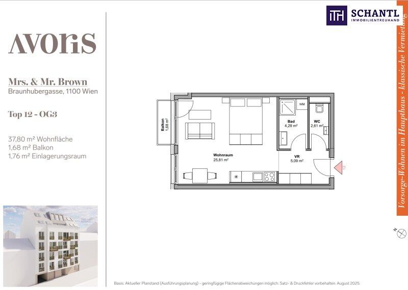 Wohnfläche: ca. 37,80m² + Balkon: ca. 1,68m² + Kellerabteil: ca. 1,76m²