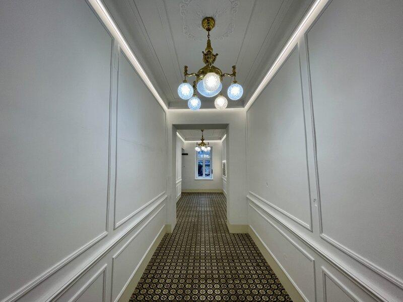 Sanierung im Gebäude: das Wohnhaus wurde frisch gestrichen und der Eingangsbereich modernisiert. Gleichzeitig blieben die bezaubernden Altbau-Details erhalten: