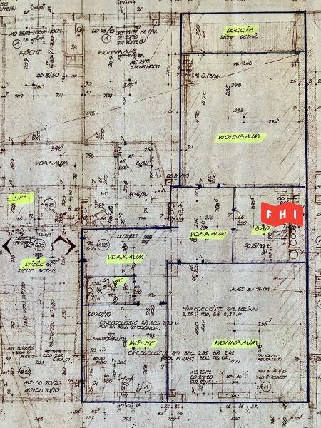 Die Wohnung ist zentral aufgeteilt mit Vorraum, Küche mit Eßplatz, Mittelraum, Wohnzimmer mit Loggia und integriertem Sonnenschutz, Badezimmer und hofseitigem Schlafzimmer. Die beiden Zimmer sind südost (Wohnzimmer) und nordwest (Schlafzimmer) ausgerichtet.
