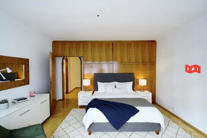 Historische Besonderheit: Die beiden Zimmer sowie der Vorraum sind mit historischen Einbauschränken aus Vollholz ausgestattet, welche im Stile und in der Zeit des Architekten Josef Hoffmann handwerklich maßgefertigt wurden. Die Einbaumöbel bieten ein übersichtliches Ordnungskonzept und einen optimalen Stauraum.
