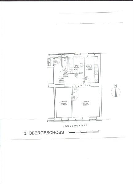 LAZARETTGASSE - NADLERGASSE, AKH-Nähe, sonnige 68 m2 Altbau, 2 Zimmer, Wohnküche, Wannenbad, Parketten, SAT/TV, 3. Liftstock - Objektnr. 5548681