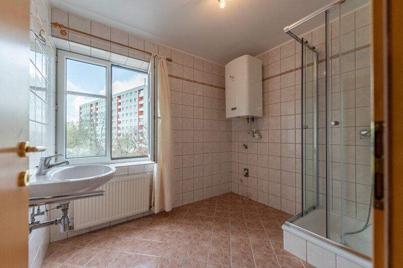 Badezimmer mit Dusche, Tageslicht und Waschmaschinenanschluss