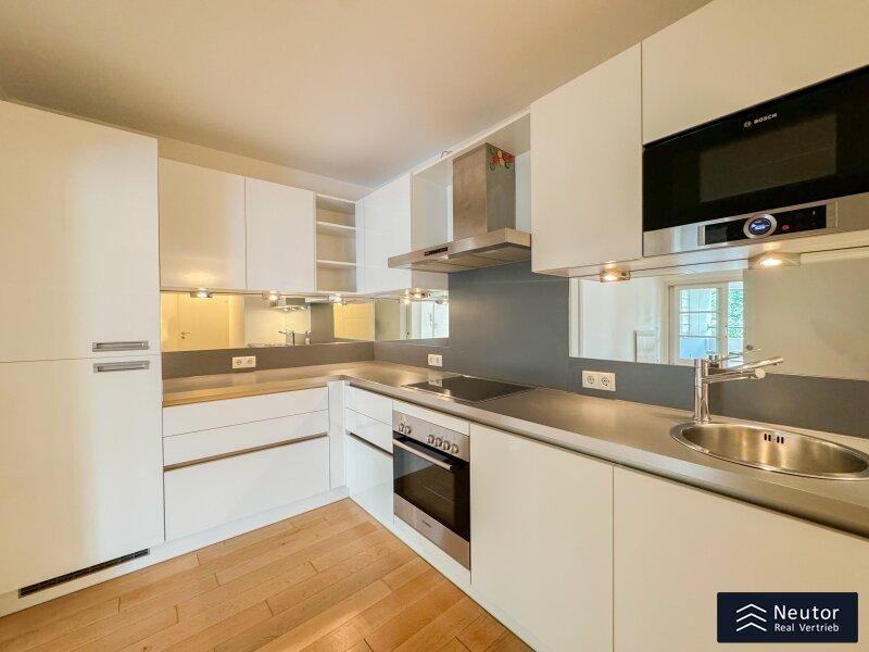 - Exklusive Ausstattung: Vollholzparkett, Einbauküche