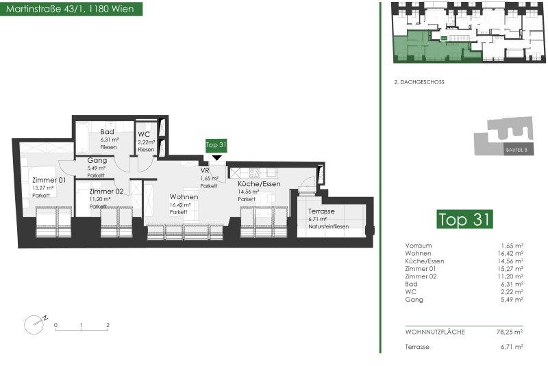 ERSTBEZUG! Sehr gut aufgeteilte Neubau Dachgeschosswohnung mit 78,25 m² + 6,71 m² Terrasse (Top 31 - Bauteil B) - Objektnr. 5549887