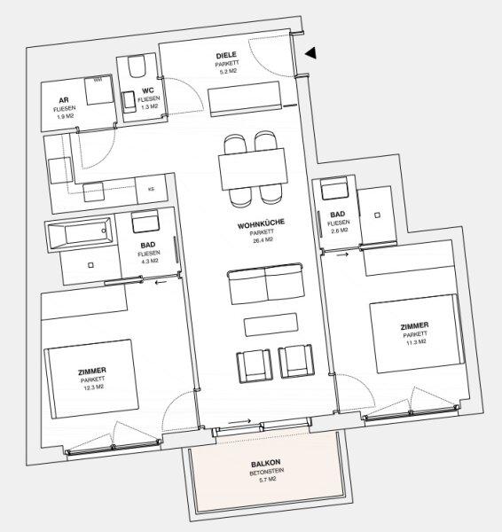 The MOLLARD 50 project presents itself as a modern new-build with three building sections and an underground garage. The architecture impresses with clean lines and thoughtful details, while the floor plans are designed with maximum flexibility and intelligent layouts. Generous balconies, loggias, terraces, and garden spaces extend the living areas of almost every apartment outdoors, creating a special quality of life.