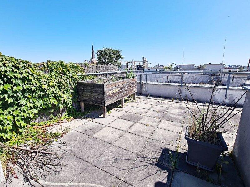 TERRASSENHIT, U1-NÄHE, 84 m2 Dachgeschoß mit 30 m2 Terrasse, 2 Zimmer, Wohnküche, 2 Bäder, Parketten, Viktorgasse - Objektnr. 5550169