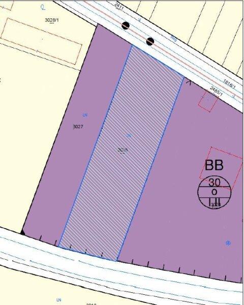 Das Grundstück ist im gültigen Bebauungsplan als Bauland Betriebsgebiet (BB) gewidmet (entspricht der Kennzeichnung Lila).