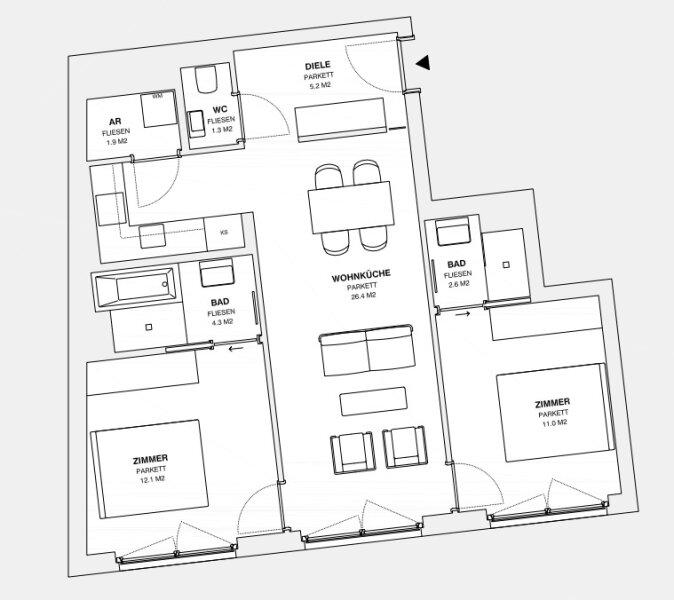 The MOLLARD 50 project presents itself as a modern new-build with three building sections and an underground garage. The architecture impresses with clean lines and thoughtful details, while the floor plans are designed with maximum flexibility and intelligent layouts. Generous balconies, loggias, terraces, and garden spaces extend the living areas of almost every apartment outdoors, creating a special quality of life.