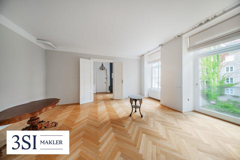 Ein besonderes Highlight stellt der neu geplante Balkon mit etwa 6 m² dar, der von der Verkäuferin errichtet wird. Die Freifläche ist sowohl vom Wohn- als auch vom Schlafzimmer zugänglich und erweitert den Wohnraum um einen sonnigen Rückzugsort ins Grüne. Dank der südwestlichen Ausrichtung sind die Räume lichtdurchflutet und freundlich, während die großzügigen Raumhöhen von bis zu 3,14 m das klassische Wiener Altbauambiente perfekt unterstreichen.