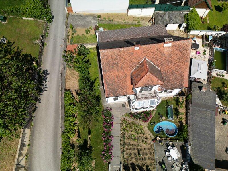 Angrenzend im Erdgeschoß befindet sich ein ca. 21 m² großer Wintergarten und eine überdachte Terrasse. Der Keller mit gesamt ca. 47 m² bietet viel Platz und teilt sich in drei Räume auf. Im Garten befindet sich eine großzügige Terrasse und ein Schuppen der auch als Lagerraum für Holz verwendet wird.