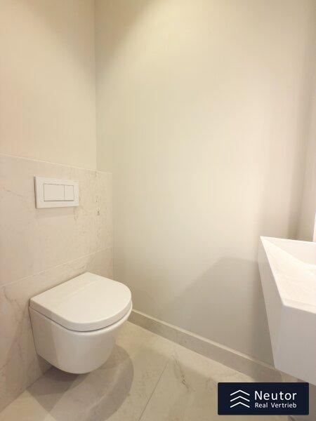 Das Badezimmer ist ein kleines Paradies: Eine stilvolle Dusche, umgeben von großflächigen, hochwertigen Fliesen, lädt zum Entspannen ein, während das separate WC mit Handwaschbecken den Alltag praktisch und elegant ergänzt. Beide Nassräume strahlen in luxuriösem Glanz und vereinen Funktionalität mit Ästhetik. Drei-fach-Isolationsfenster im klassischen Altwiener Stil rahmen die Welt draußen ein, halten die Wohnung warm und die Stadtgeräusche fern. Und für den perfekten Komfort Eine clevere Nische verbirgt den Waschmaschinenanschluss und die Therme, sodass nichts die harmonische Optik stört.