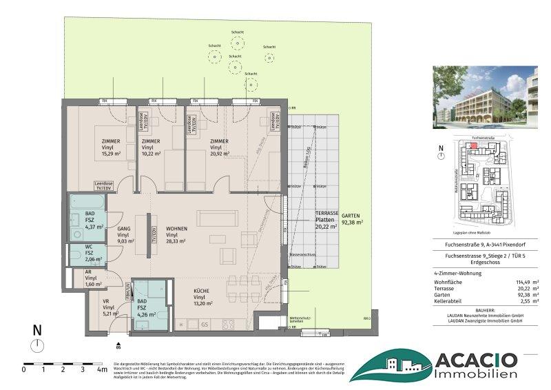 Diese topmoderne und großzügige 4-Zimmer-Gartenwohnung verfügt über ca. 114,49m² Wohnfläche und einem über 90 m² großen Eigengarten samt Terrasse.