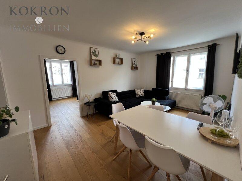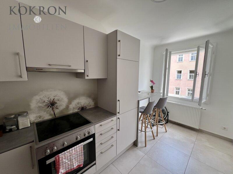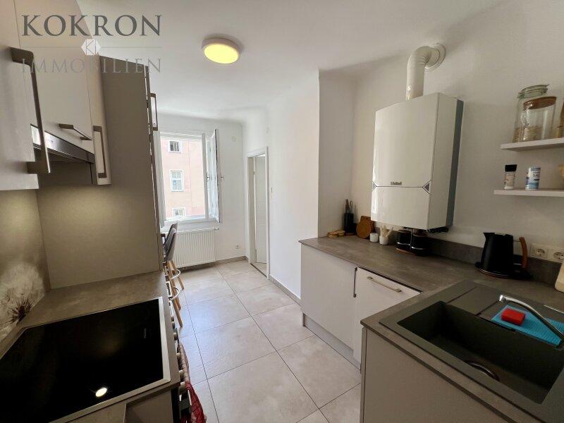 Mit drei hellen und lichtdurchfluteten Zimmern ist diese Wohnung ideal für Singles, Paare oder kleine Familien. Der offene Wohnbereich kombiniert eine einladende Wohnküche mit einer hochwertigen Einbauküche, die zum Kochen und Verweilen einlädt. Ob für gesellige Abende mit Freunden oder entspannte Sonntage dieser Raum bietet die perfekte Kulisse für all Ihre Lebensmomente.