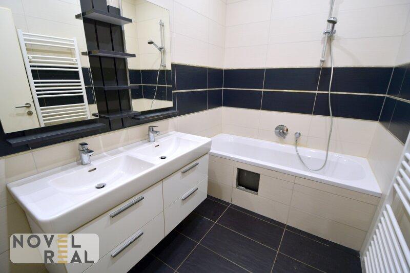 Badezimmer mit Wanne und Doppelwaschbecken
