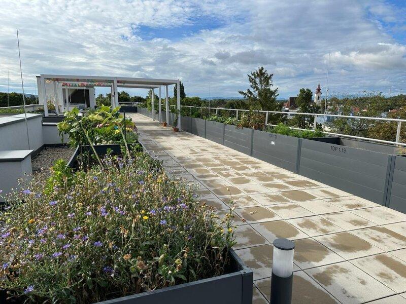 - Besonderes Highlight: ein Gemeinschaftsgarten am Dach bietet jedem Bewohner die Möglichkeit zum eigenen nachhaltigen Lebensmittelanbau