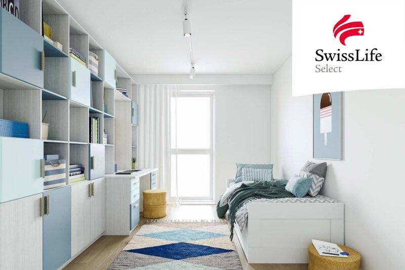 | Schlafzimmer | Abseits des Wohnzimmers bietet das private Schlafzimmer ausreichend Platz für ein Bett, einen Kleiderschrank und zusätzlichen Stauraum.
