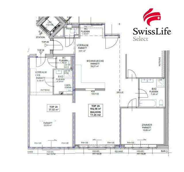 Die Raumaufteilung der Wohnung Top 29 gestaltet sich wie folgt: