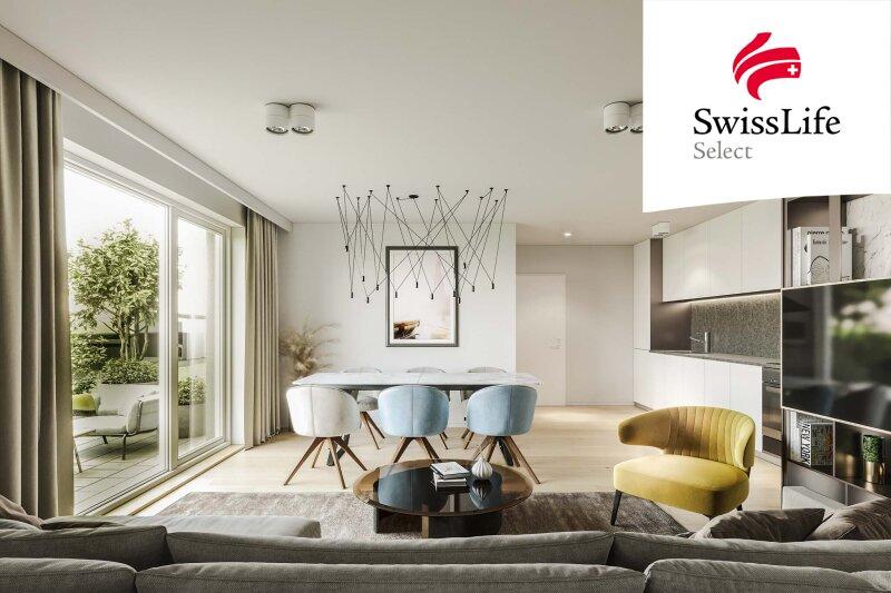 | Wohnküche | Die offene Wohnküche verbindet Funktionalität mit Gemütlichkeit: Eine stilvolle Küchenzeile, ein heller Essbereich und eine komfortable Sitzecke schaffen ein einladendes Ambiente. Optional lässt sich auch eine Home-Office-Ecke einrichten. Von hier aus genießt man den direkten Zugang zum großzügigen Balkon.