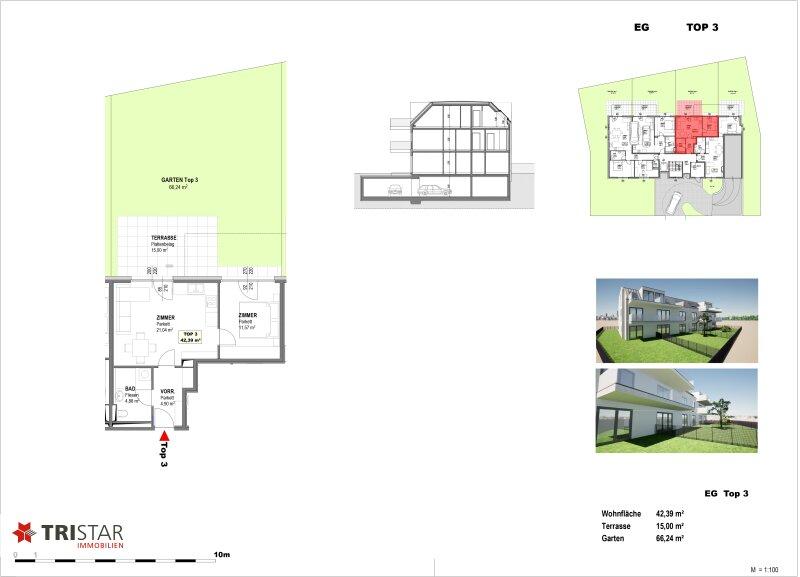 Top 3 (2-Zimmer-Gartenwohnung), gewichtete Fläche: 61,78 m² | Kaufpreis Eigennutzer: € 259.000 | Anlegerpreis netto: € 233.100 | Brutto inkl. 20% MwSt: € 279.720