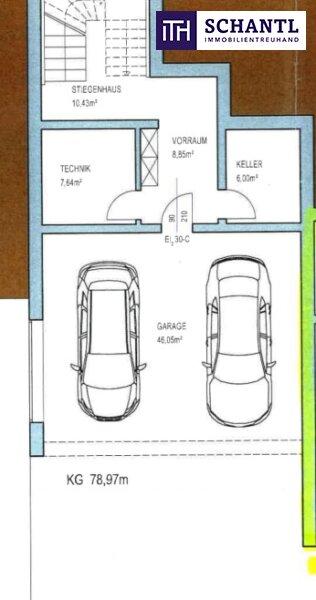 - im UG befindet sich ein Abstellraum mit 6,14m², der Stromkastenzähler, der Vorraum mit 8,85m², der Technikraum mit 7,36m² und das Treppenhaus mit 13,59m²