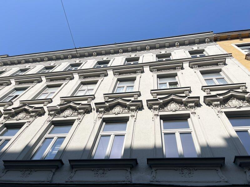 Die Wohnung liegt in einem Altbaugebäude bei welchem die Fassade mit Fenstergiebeln sowie mit einigen Stuckelementen verziert ist. Die Wohnung verfügt über einen hellen Vorraum mit 2 Fenstern zum Innenhof, worüber Sie das separate WC mit Handwaschbecken sowie das hofseitige Wohnzimmer mit Balkon erreichen. Von dort aus gelangen Sie weiter in die die sichtgeschützte Küche inkl. Geräte (Kühlschrank, Gefrierfach, Geschirrspüler, Ceranfeld, Herd, Umluftherd). Anschließend gelangen Sie zentral von einem kleinen weiteren Vorraum in das Badezimmer mit Wanne inkl. Glastrennwad und Waschmaschine und in die beiden Schlafzimmer (straßenseitig ausgerichtet auf die Columbusgasse = Einbahnstraße).