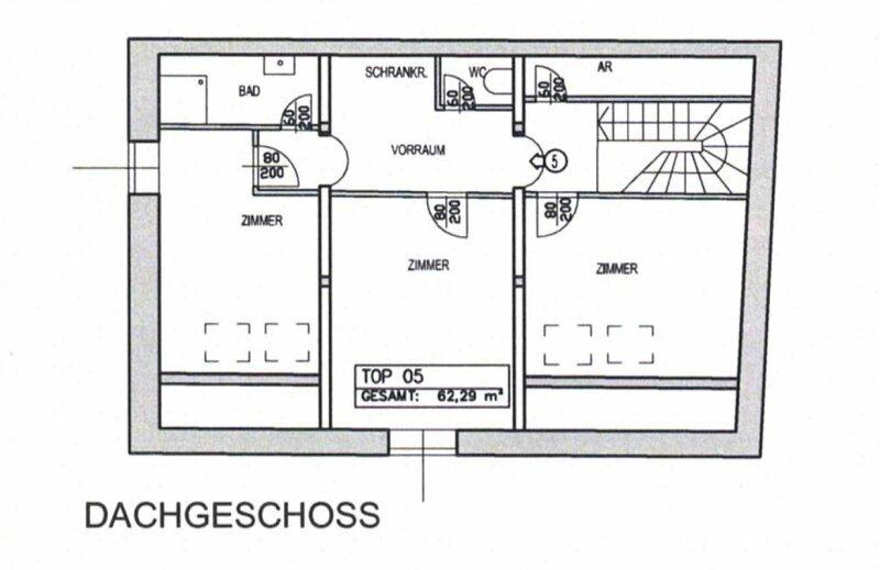 Im Dachgeschoss befindet sich eine zusätzliche Wohneinheit mit ca. 62,29 m², ebenfalls leerstehend.