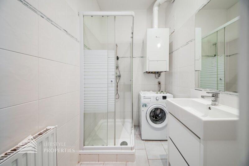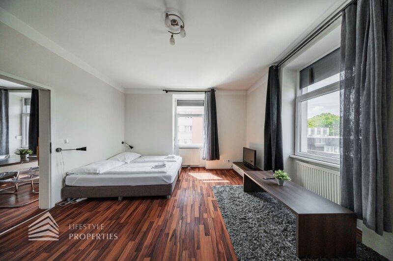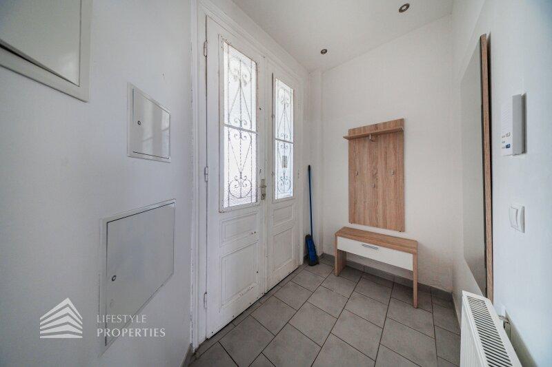 Die Wohnung befindet sich im 3. Liftstock eines gepflegten Altbaus aus dem Jahre 1900 und gliedert in einen Vorraum, einen Wohnraum mit Küche, ein Schlafzimmer und ein Bad. Es wird mittels Gastetagenheizung beheizt.
