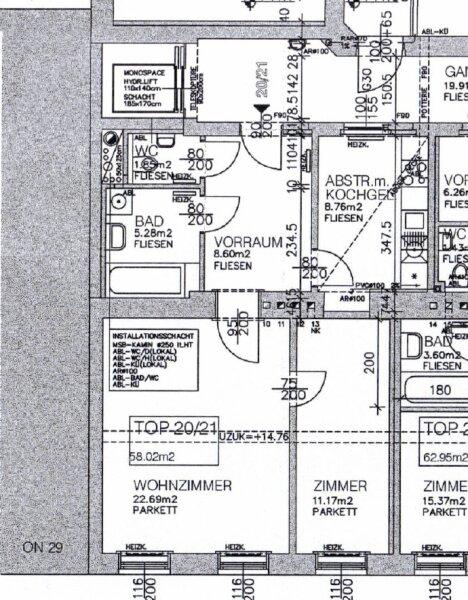 Die Wohnung befindet sich im 3. Stock eines im Jahre 1900 errichteten Altbaus und ist bequem mit einem Lift zu erreichen. Die Wohnfläche von ca. 58 m² gliedert sich in ein Wohnzimmer, ein Schlafzimmer, eine Küche, ein Badezimmer, einen Vorraum und ein separates WC auf. Die Wohnräume sind mit einem schönen Parkett ausgestattet. Das Bad, der Vorraum und das WC sind mit Fliesen verlegt. Ein Kellerabteil sowie ein Kinderwagen- und Fahrradraum stehen ebenfalls zur Verfügung.
