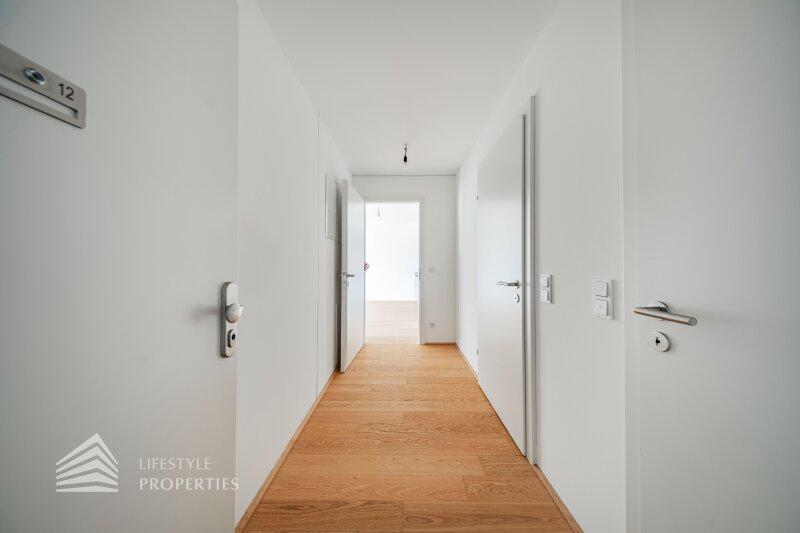 Die Wohnungen werden mittels Fußbodenheizung über eine Luft-Wärmepumpe geheizt, eine Deckenkühlung sorgt in den warmen Monaten für angenehme Temperaturen und Vorrichtungen zum Einbau einer Klimaanlage sind auch vorhanden. Weiters sind elektrisch betriebene Außenjalousien / Raffstores vorhanden. Ein Platz in der hauseigenen Tiefgarage kann zusätzlich erworben werden.