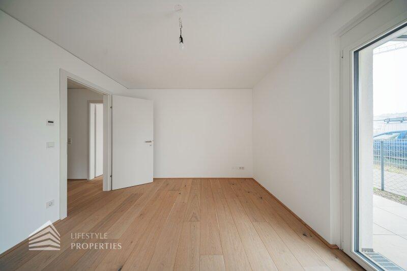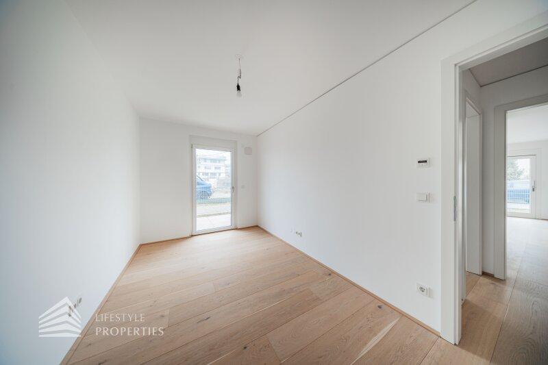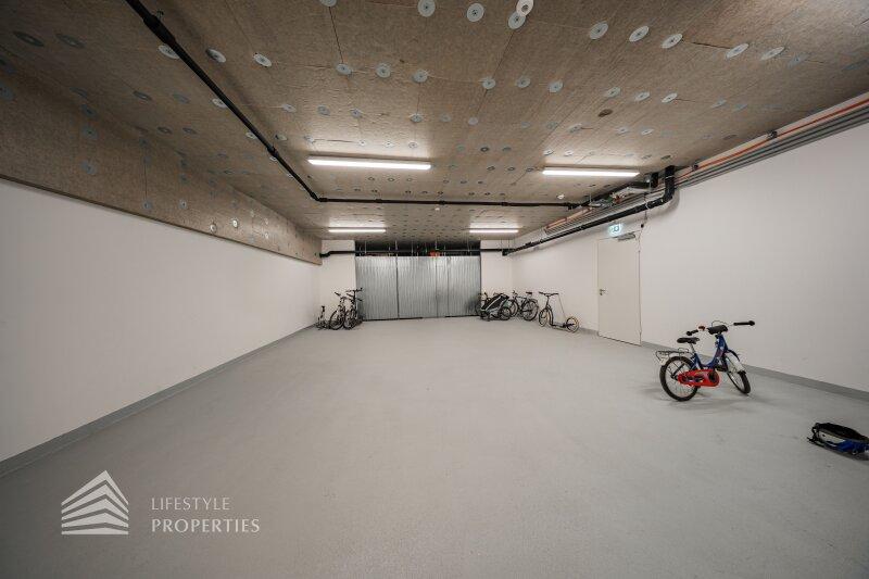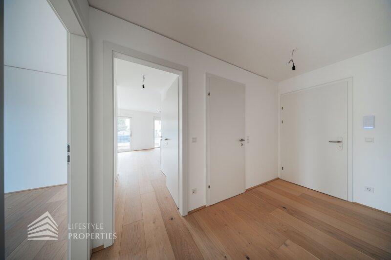 Die Wohnungen werden mittels Fußbodenheizung über eine Luft-Wärmepumpe geheizt, eine Deckenkühlung sorgt in den warmen Monaten für angenehme Temperaturen und Vorrichtungen zum Einbau einer Klimaanlage sind auch vorhanden. Weiters sind elektrisch betriebene Außenjalousien / Raffstores vorhanden. Ein Platz in der hauseigenen Tiefgarage kann zusätzlich erworben werden.