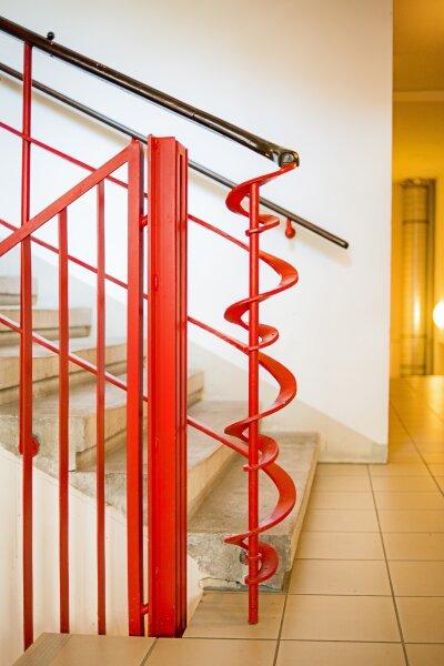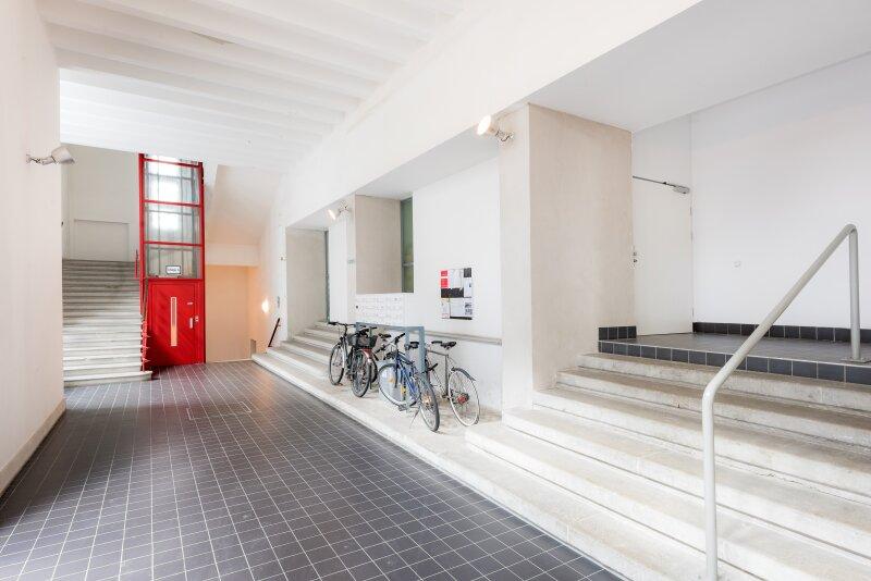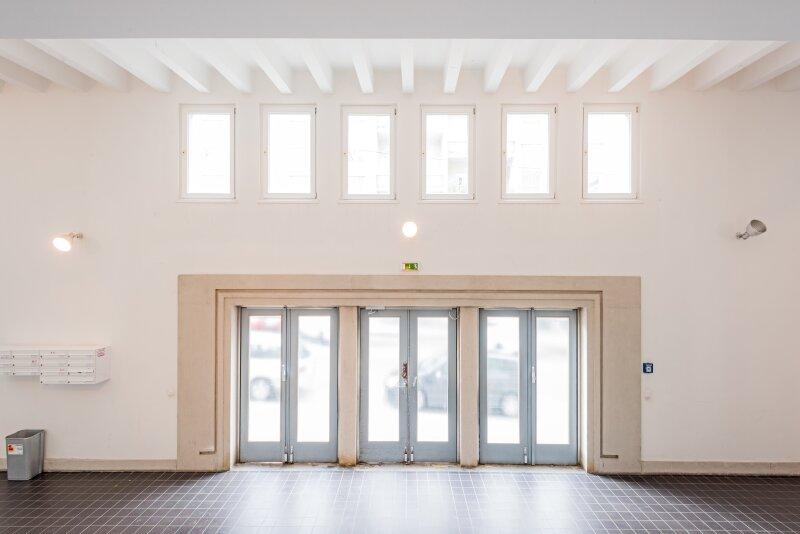 Das 1-Zimmer-Apartment mit 47,35qm liegt hofseitig nach Osten gerichtet im 2. Liftstock. Die Architektur der Außenfassade setzt sich im Inneren des Gebäudes und der Wohnung fort.