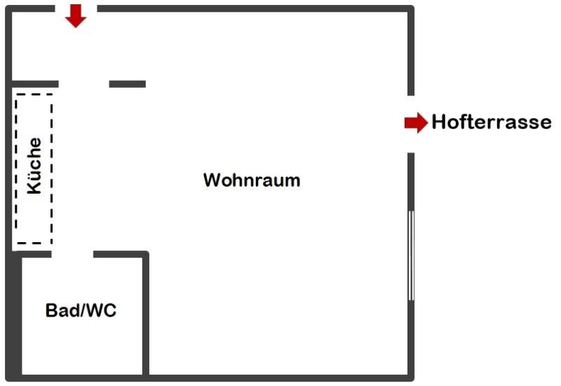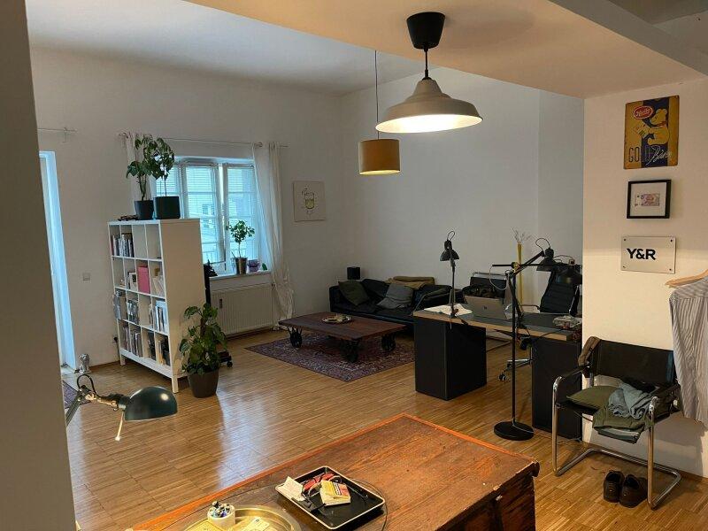 Der sehr große Innenhof ist auf der Ebene der Wohnung großteils überdacht und als Terrasse ausgeführt. Die allgemeine Hofterrasse ist direkt vom Wohnbereich aus begehbar.