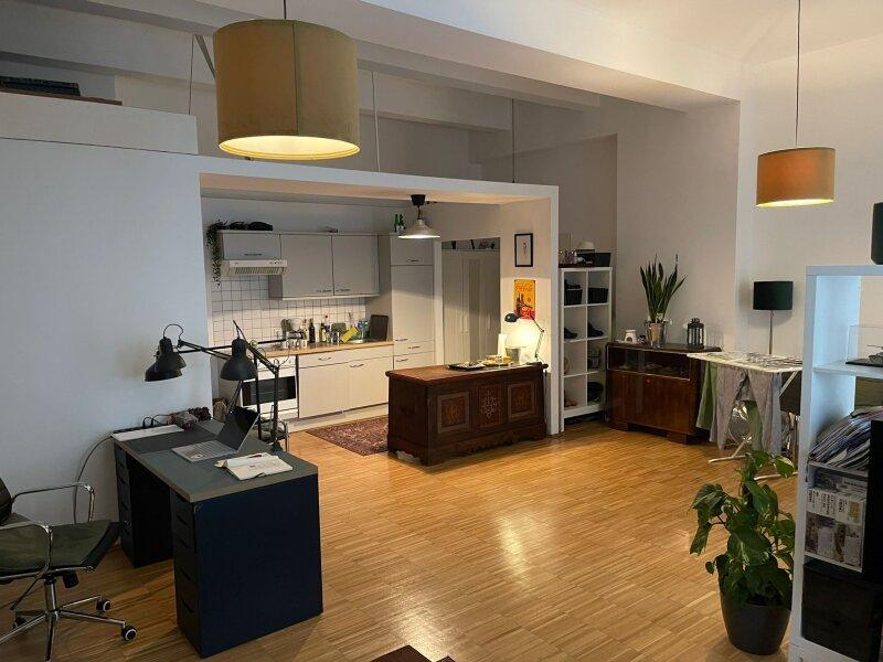 Sie betreten ein geräumiges Apartment mit einer optischen Abtrennung zur offenen Küche.